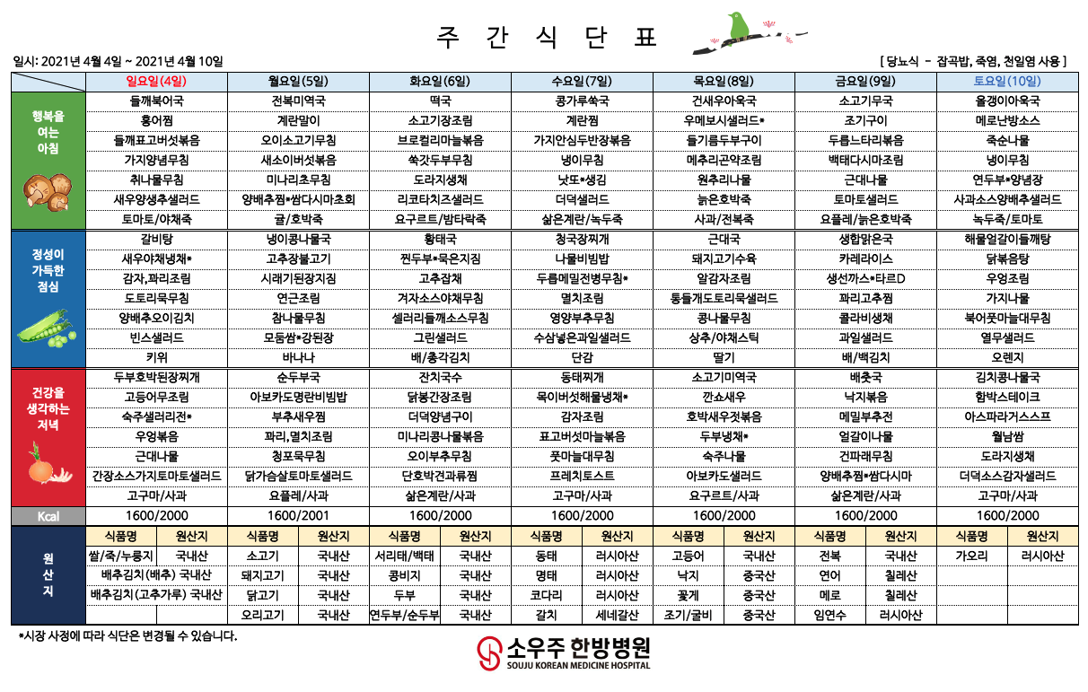 홈 > 고객 지원 > 주간 식단표