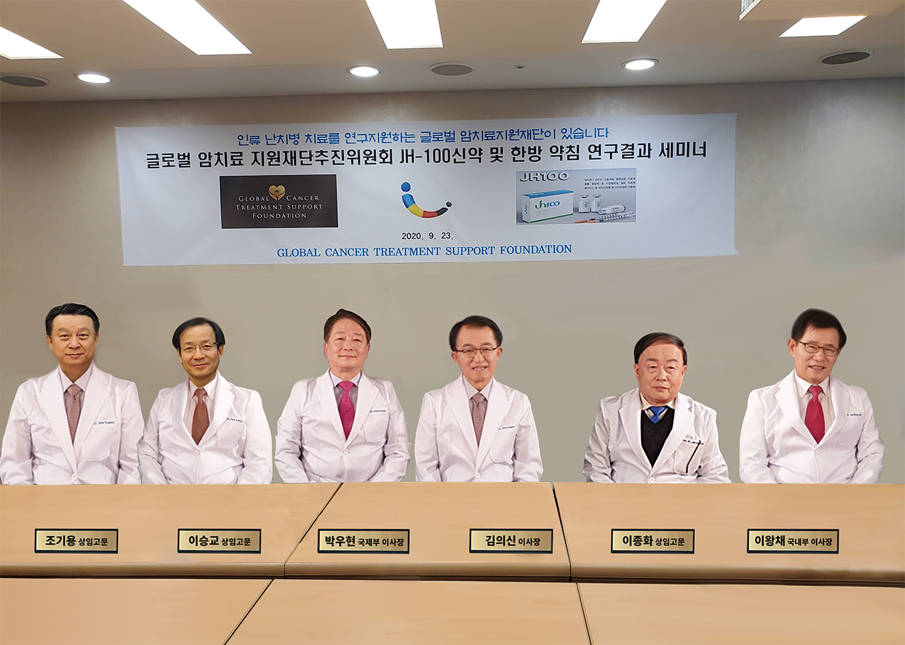 글로벌 암치료 지원재단추진위원회 JH-100 신약 및 한방 약침 연구결과 세미나 소우주요양병원 0 2711 2020.11.09 18:16 글로벌 암치료 지원재단추진위원회JH-100 신약 및 한방 약침 연구결과 세미나