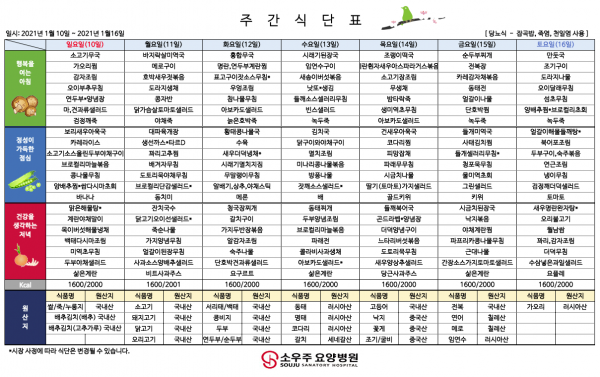 홈 > 고객 지원 > 주간 식단표