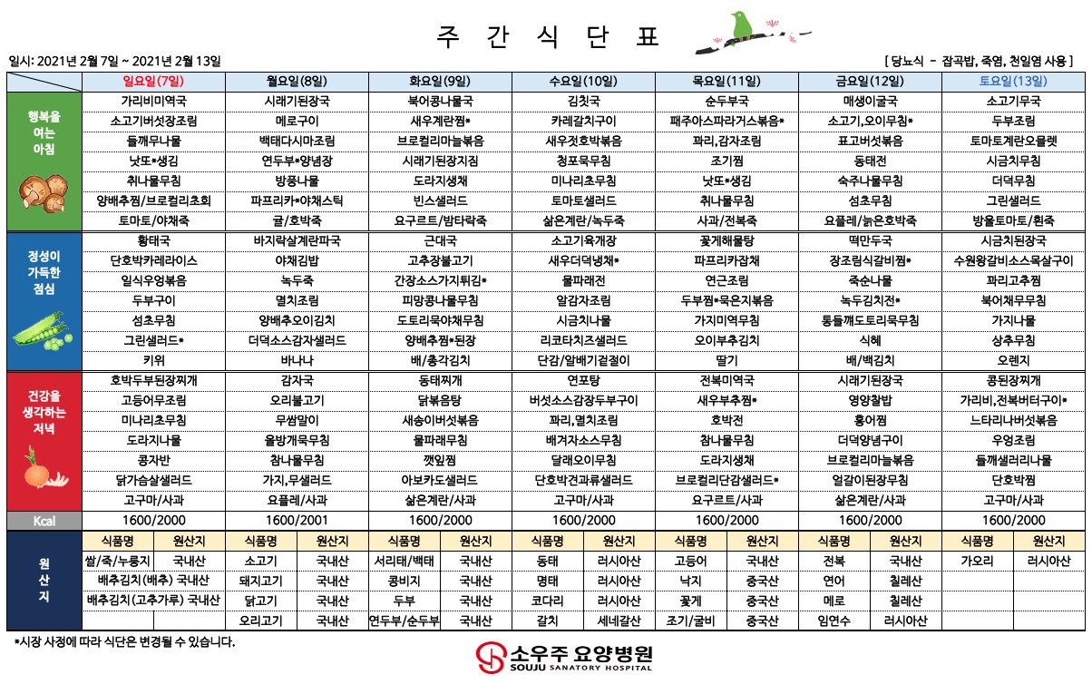 홈 > 고객 지원 > 주간 식단표