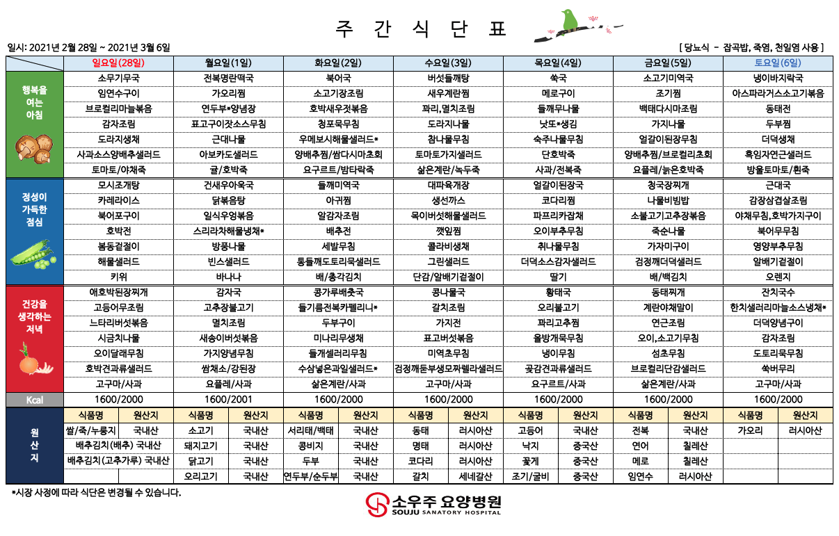홈 > 고객 지원 > 주간 식단표