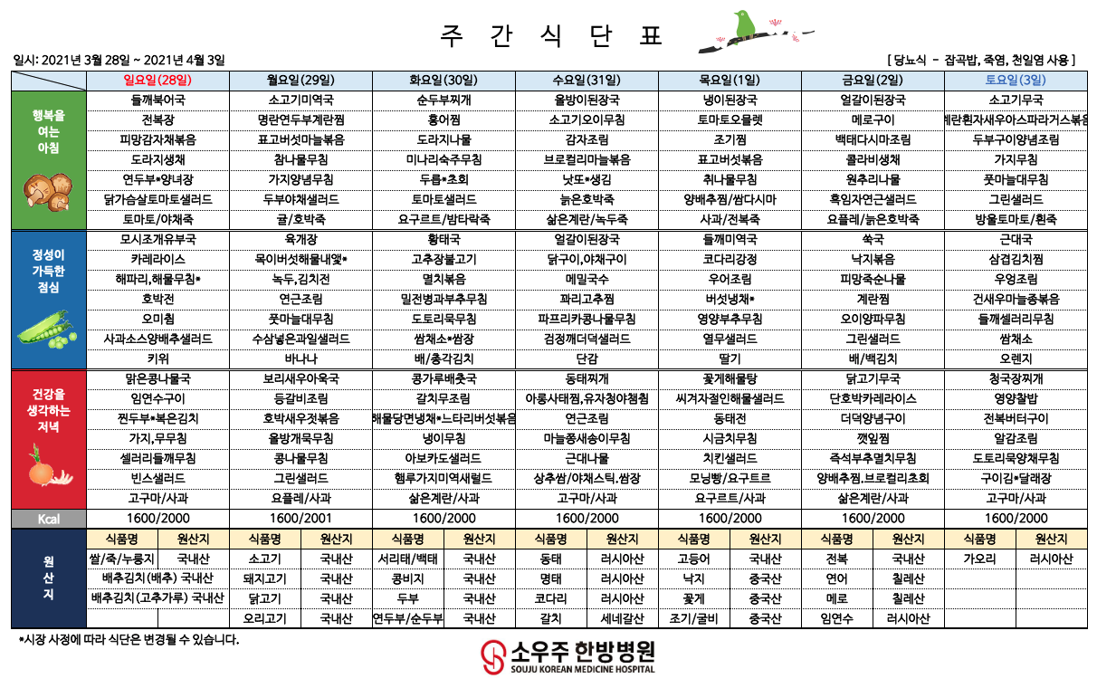 홈 > 고객 지원 > 주간 식단표
