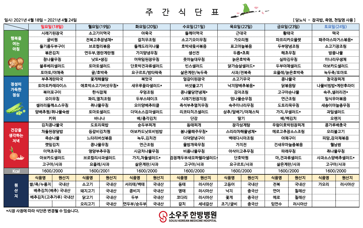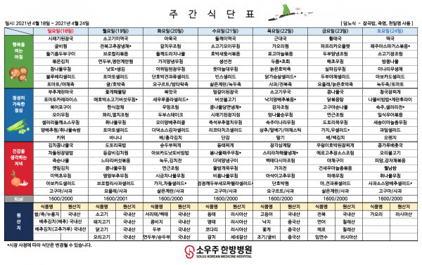 홈 > 고객 지원 > 주간 식단표